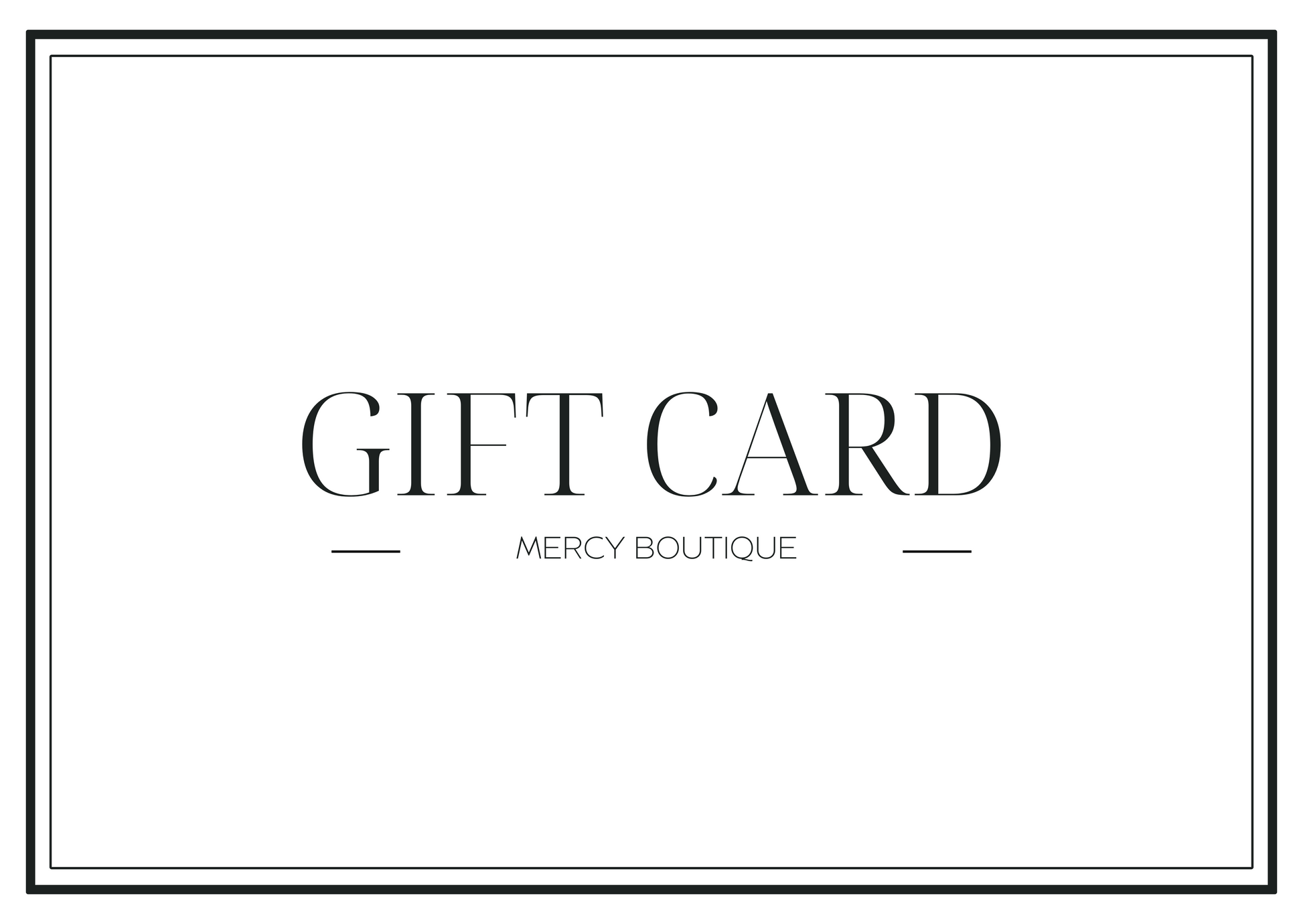 We are pleased to announce the launch of the Mercy Boutique Electronic Gift Card. The MB e-gift card will be delivered via email to the address specified during the checkout process. The recipient can utilize their e-gift card to purchase any items available on our online store at www.mercyboutique.com.