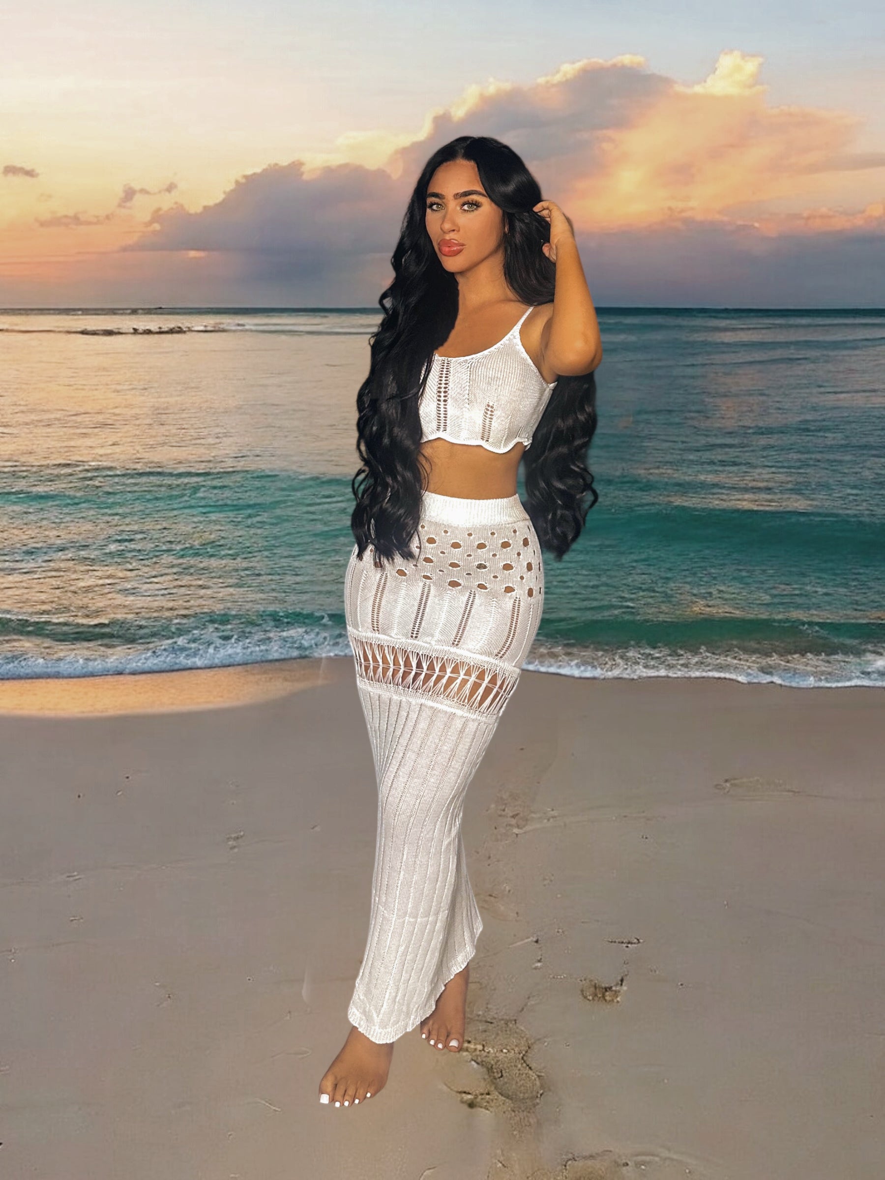 Openwork Scoop Neck Spaghetti Strap Swimsuit Cover-Up Set